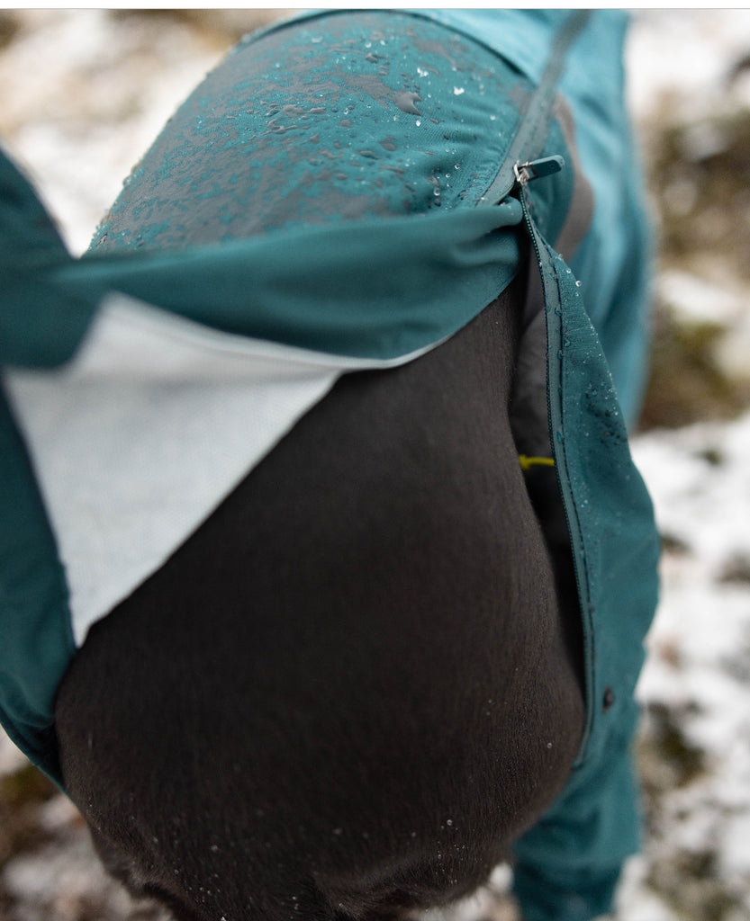 Vatnsheldur og vindheldur regnfalli fyrir allan líkamann, hannaður með Freemotion tech™ efni sem leyfir hundinum þínum hlaupa án þess að takmarka hreyfingar.