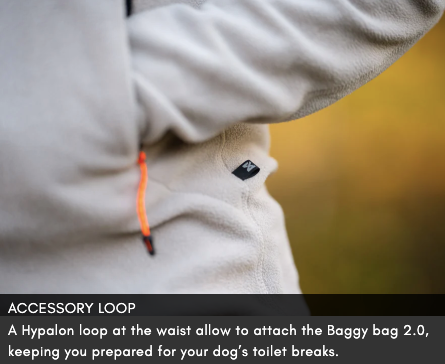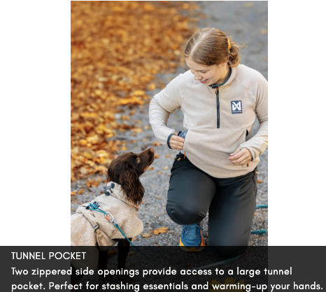 Þægileg hálfrennd létt flíspeysa með samfelldum vasa, fullkomin fyrir útiveru ævintýri með hundinum þínum.