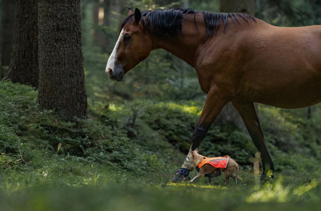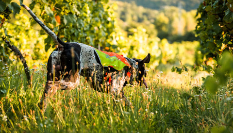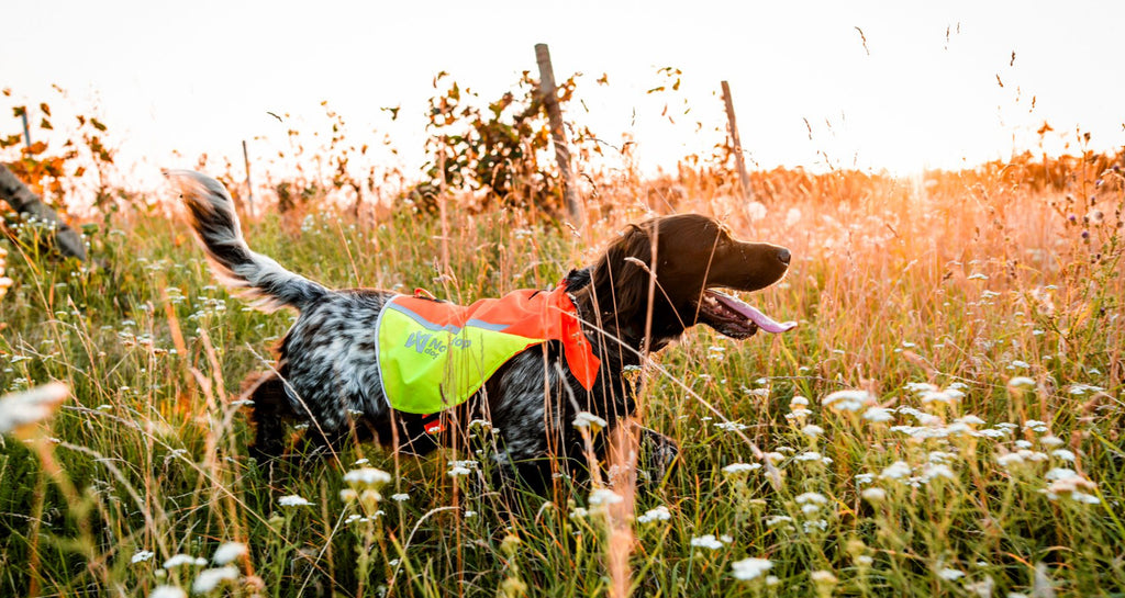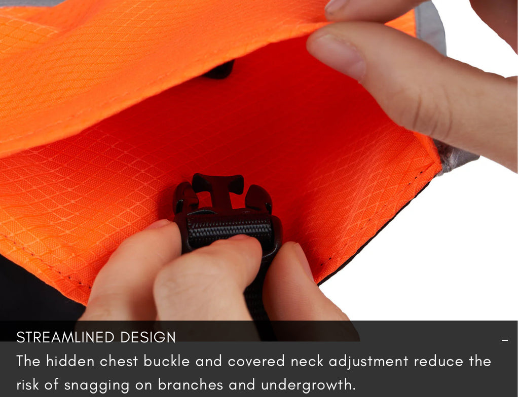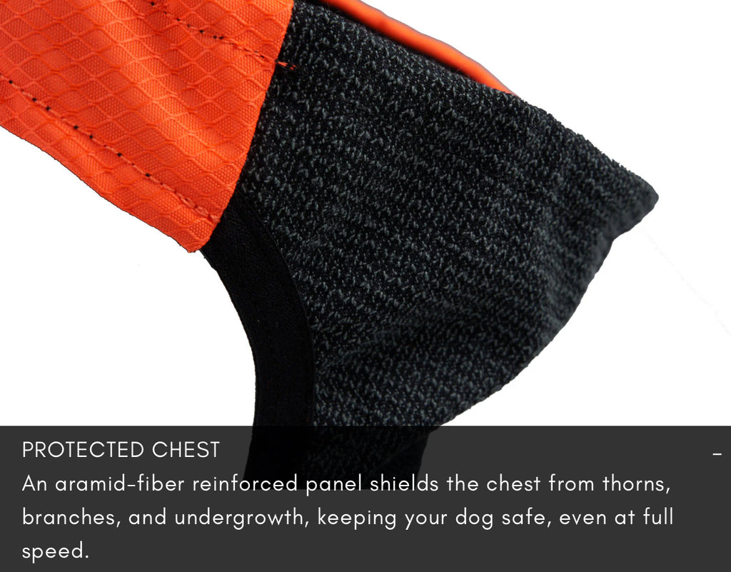 Slitsterkt sýnileikavesti með aramid-trefja styrktri bringuvörn sem ver hundinn þinn gegn hvössum steinum og gróðri.